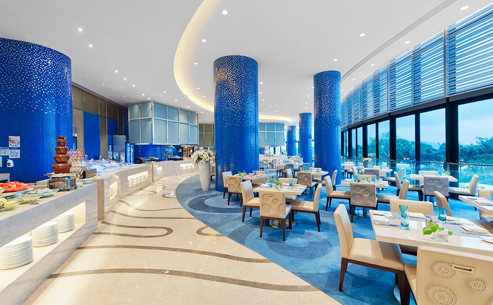 В лобби-баре отеля царит непринужденная и приятная атмосфера. Это идеальное место для непринужденных встреч. Вы можете отведать ароматный кофе, изысканные десерты и насладиться неторопливым времяпрепровождением.На втором этаже отеля находится западный ресторан Yikele, в котором в течение всего дня подают разнообразные вкусные блюда, в том числе аутентичные азиатские деликатесы и блюда интернациональной кухни, а также ужин "шведский стол" с сашими в горячем виде из морепродуктов. На пятом этаже отеля находится китайский ресторан Juweixuan, в котором подают разнообразные изысканные блюда кантонской, сычуаньской, хунаньской и хайнаньской кухни.