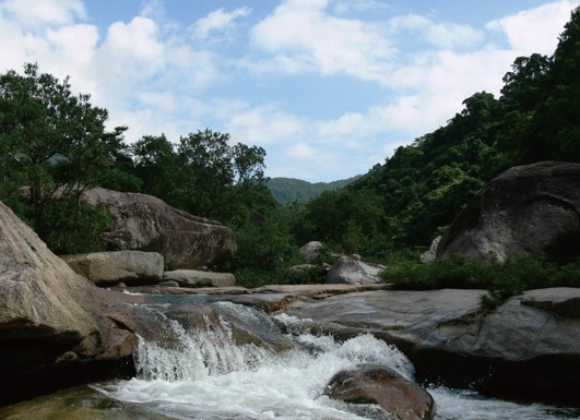 亚龙湾国家旅游度假区,是三亚市东郊的一处优质热带海滨风景区,离市中心区约10公里。亚龙湾为一个月牙湾,拥有7千米长的银白色海滩,亚龙湾集中了现代旅游五大要素:海洋、沙滩、阳光、绿色、新鲜空气于一体,呈现明显的热带海洋性气候,适宜四季游泳和开展各类海上运动。这里的海水清澈见底,可以清晰地看见10米以下的海底景观。这里8公里长的海滩宽阔平缓,沙粒洁白细腻,自然资源国内绝无仅有,可与国际上任何著名的热带滨海旅游度假胜地相媲美。