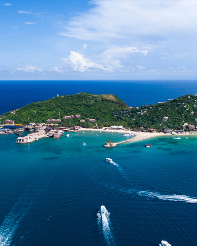 三亚湾度假区东起三亚港,二十里长的滨海大道依湾绵延,椰树成林人道阳江十里银滩美,可比起这二十里椰林画廊,就小巫见大巫了。放眼望去东、西玳瑁洲(玳瑁岛,俗称东岛、西岛),两座小岛浮于海中,相邻而望。东岛驻军戒备森严,西岛渔家出入自由。相邻的小岛承担的却是不同的使命。三亚湾湾长沙细,岸上绿树如带,构成三亚海滨风景区美丽动人的风景线。