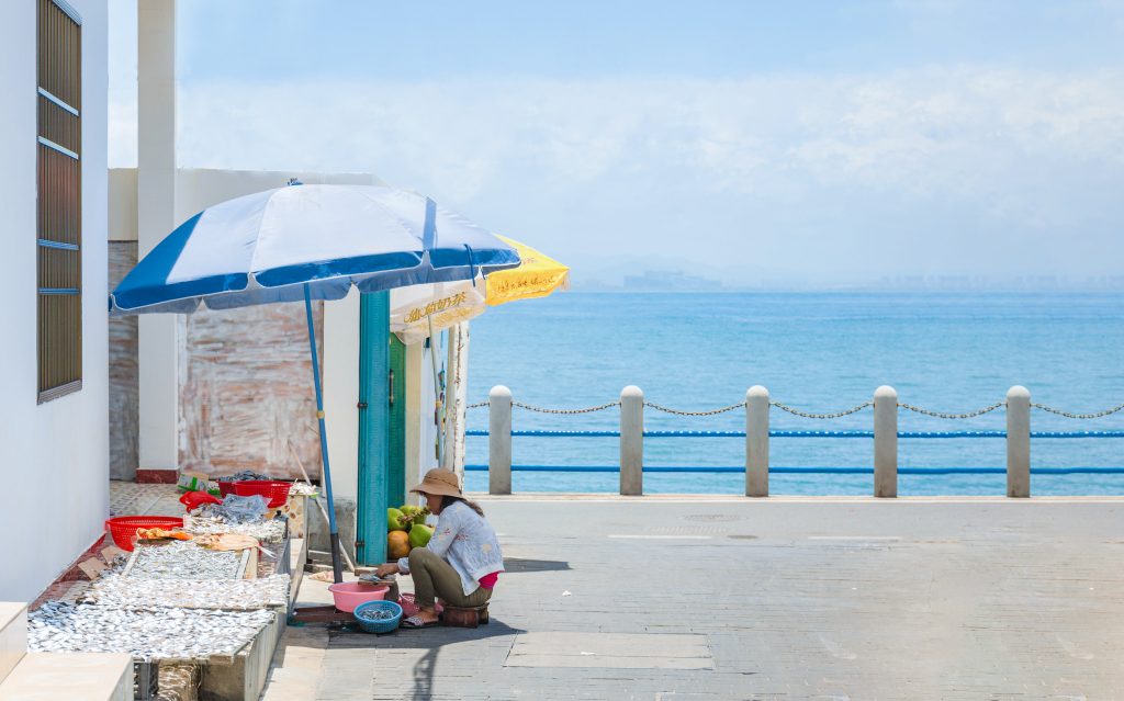沿着蜿蜒的滨海小径行走,带着淡淡咸味的海风轻拂脸颊。路的左边是热闹的渔家小铺,右边是开阔的碧蓝大海。走累了,就在路边的椰子树荫下坐一会儿,看远处的渔船缓缓划过海面,留下一道白色的浪痕。每走几步,就能遇见不同风景——可能是伸向海中的小小码头,也可能是开满九重葛的渔家小院。脚步微微放慢,因为每一步都值得停留。