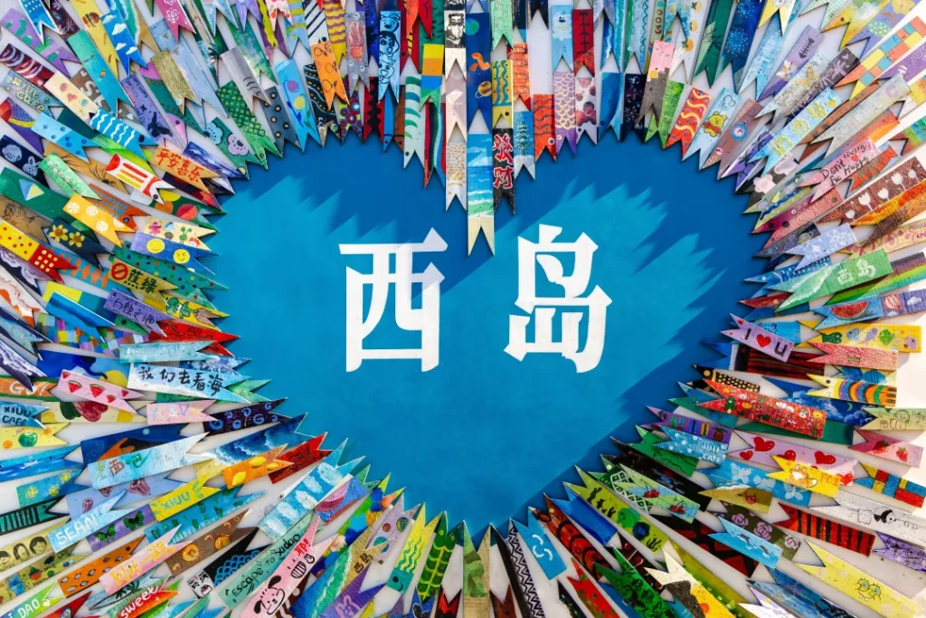 穿行在渔村交织的窄巷里,一个转弯,色彩便毫无预兆地闯入了视野——那是一面由无数彩绘木牌拼贴而成的巨型爱心墙。木牌上的字迹各异,海风拂过,木牌轻轻相碰,发出清脆的声响,像是无数故事在低声交谈。墙边摆着供游客绘制的空白木牌和彩笔,不妨花上十分钟,画下你眼中的西岛:或许是一片椰影,或许只是当下心情的涂鸦。亲手将木牌挂上墙的瞬间,你也成为了这个温暖记忆的一部分。