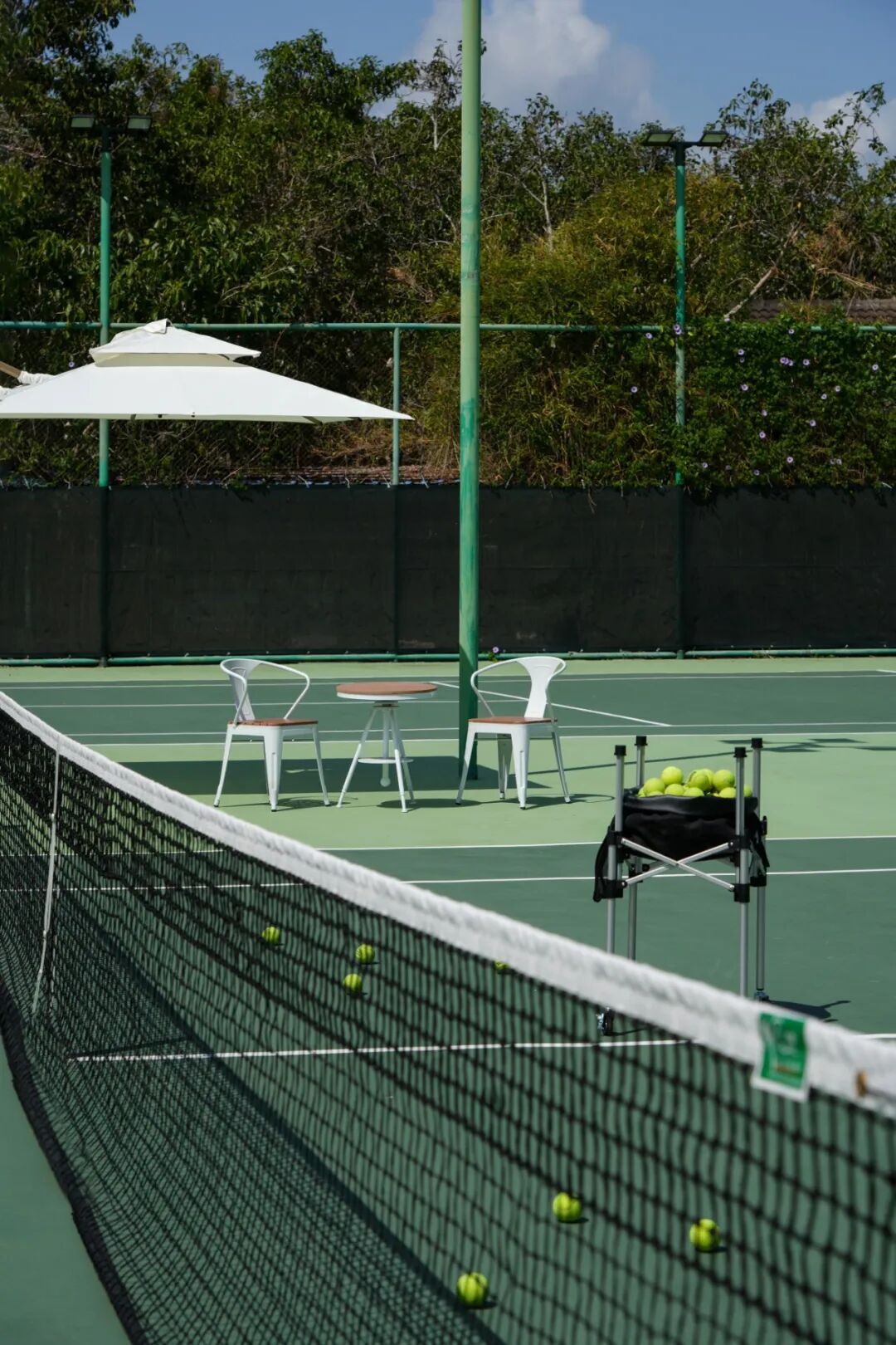 这座网球场是一处被密林与海风温柔包裹的艺术空间。球场藏匿于茂密的热带植被之间,直面珊瑚湾清澈如镜的“玻璃海”,形成了一个独特的天然氧吧。在这里挥拍,你可以俯瞰海天一色的壮丽景观;当日暮时分,晚霞会将球场染成温柔的橘粉色,为竞技增添了一抹电影般的叙事感。