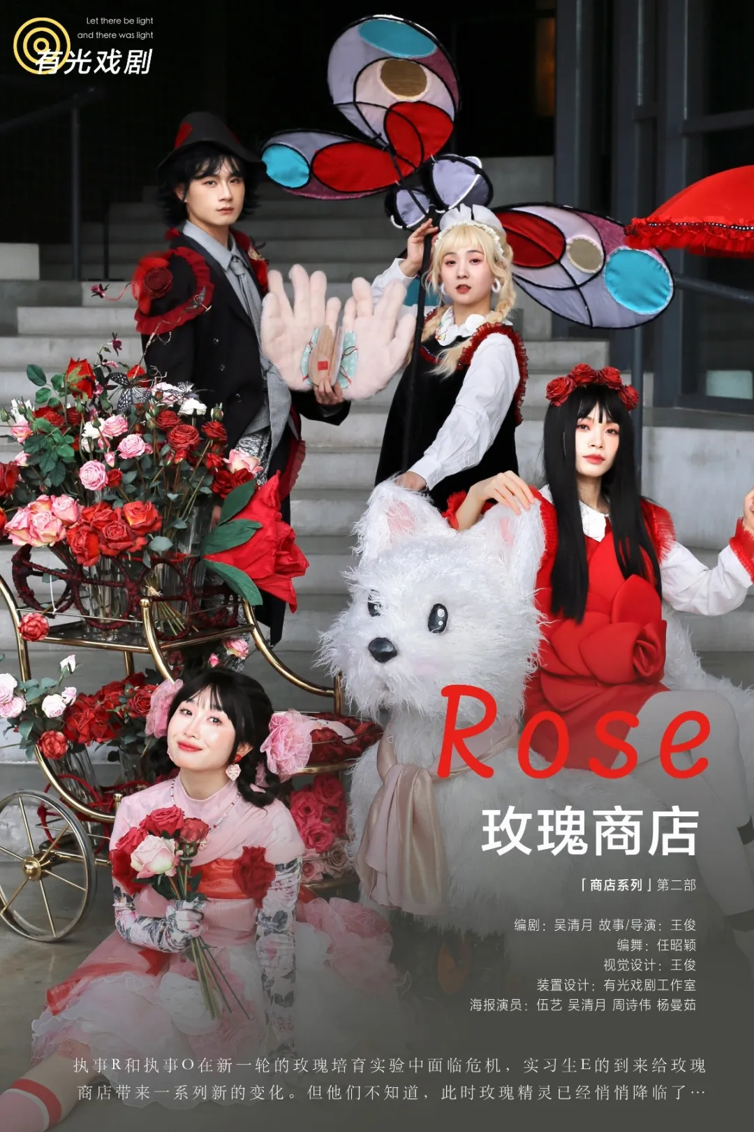 作为玫瑰商店守护者的执事R与执事O,想要寻找能让玫瑰盛开的精灵S,却屡试屡败。直到实习生E的出现,他们渐渐走出了各自的执念,不被人们看到的S,只有当人们真正爱上自己的那一刻,才能看到玫瑰重新绽放。
