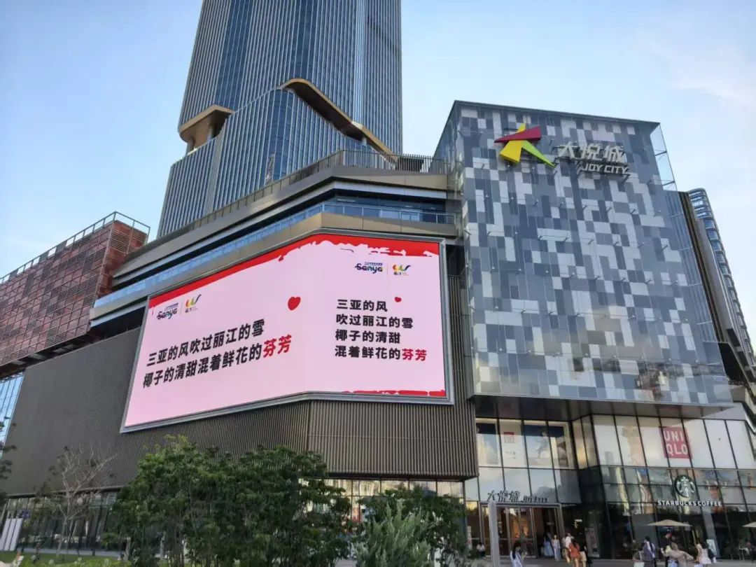 三亚的大悦城、天悦城、海旅免税城等,丽江古城核心大屏,妥妥的显眼包,妥妥的秀恩爱,咱就是炫耀!