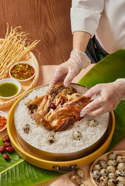 在粗盐里制作出的盐焗鸡,才是正宗的海南盐焗鸡风味。