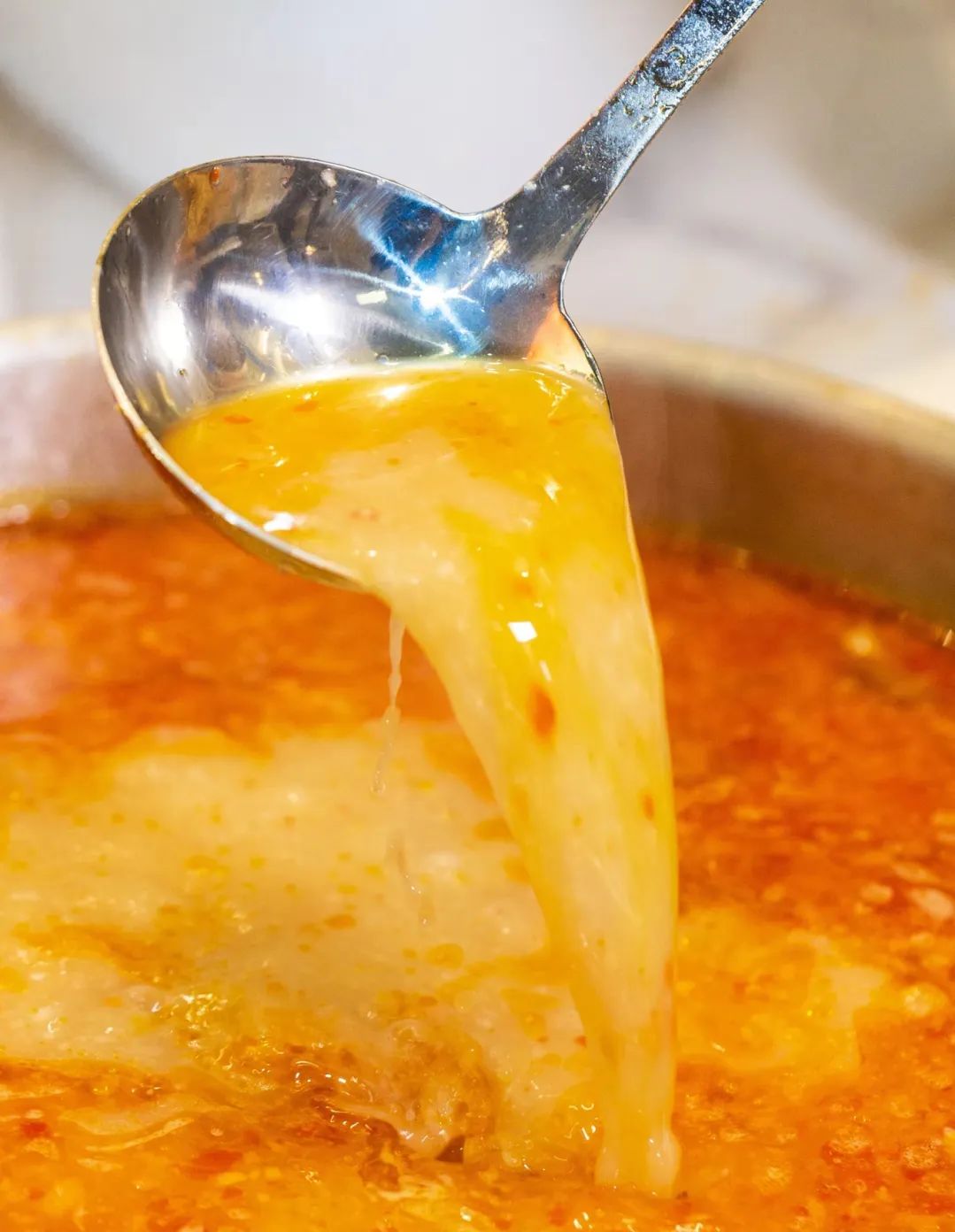 先喝汤是基本,火红沸腾的酸辣汤汁,用谷物酿制米酒,让酒糟发酵至酸中带甜,又夹杂着丝丝米香的醋酸,酸爽不腻,越吃越香。酸辣汤汁入胃的瞬间,吃过的人都忘不了…