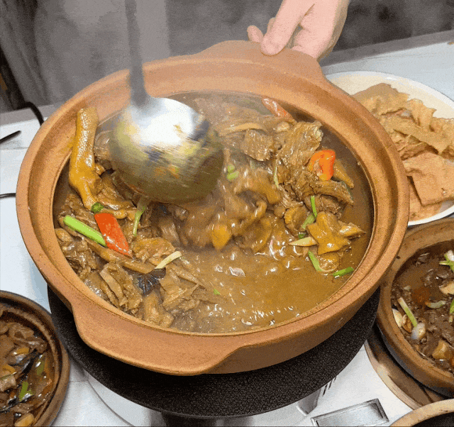 猪脚煲也是必点菜品之一。开盖的一瞬间,浓郁的猪脚香味扑面而来。满满的胶原蛋白,猪脚软糯,完全不油腻。多重口感,直接一次性满足你所有的贪心。