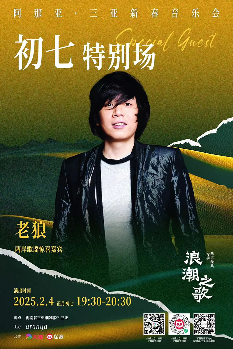 在正月初三到初六,蔡琴、潘越云、齐豫、胡德夫等重磅音乐人,已齐聚阿那亚·三亚小镇,带来四场新春音乐会,用经典歌曲带领我们在时间的长河中逆流而上、回溯时光。