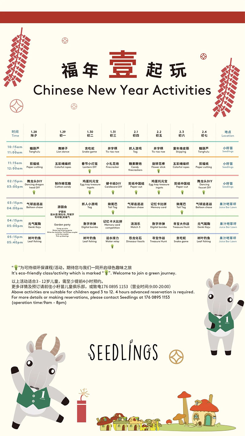 3.小籽苗儿童俱乐部准备了春节小灯笼等趣味活动和“舞龙舞狮”等全家参与活动;